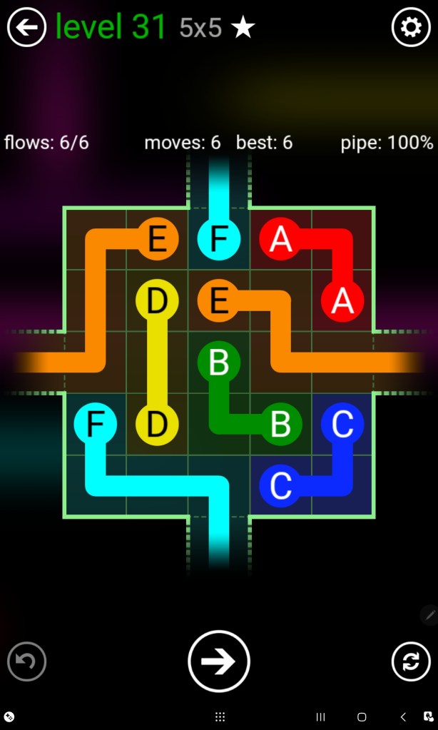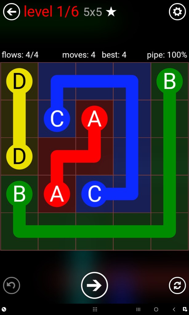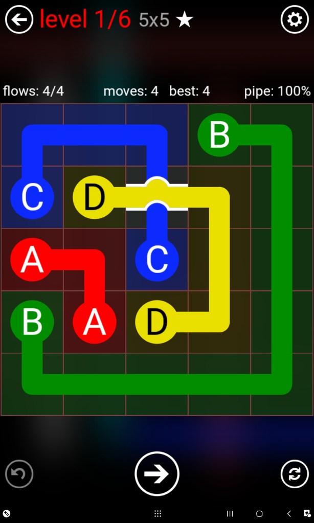 First on this list is Flow Free. The objective of every puzzle is to link all the coloured flows together in such a way that it fills the entire grid without any of them crossing over each other as illustrated below. A simple, easy to understand logic puzzle game.