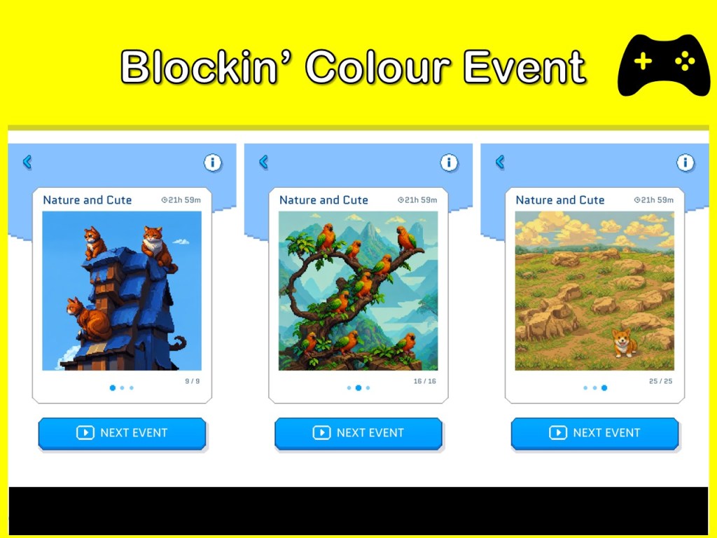 My favourite part is the Event section where you must solve three pages of puzzles to unlock a rotating trio of background pixel images on a different theme.