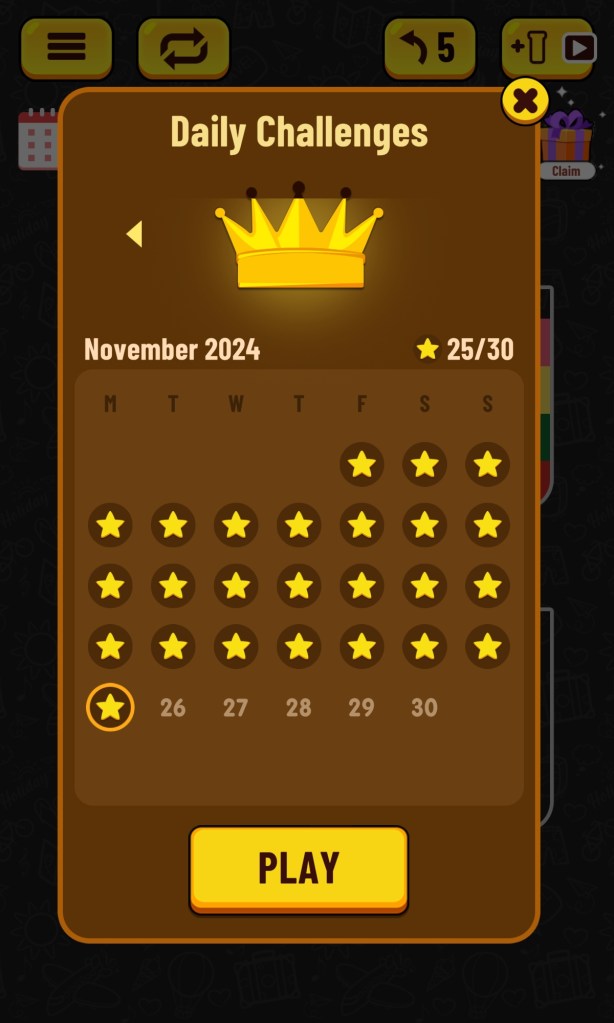 And there is also a Daily Challenge where every level complete colours in a Gold Crown.